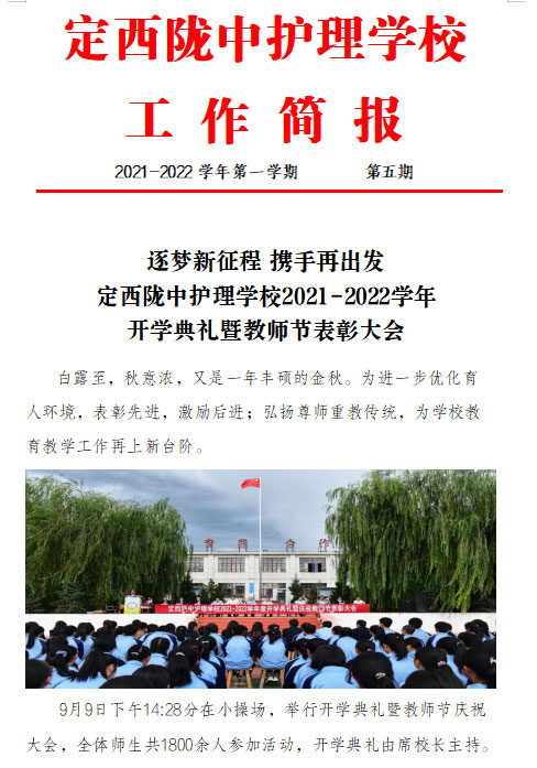 逐梦新征程 携手再出发 定西陇中护理学校2021-2022学年 开学典礼暨教师节表彰大会