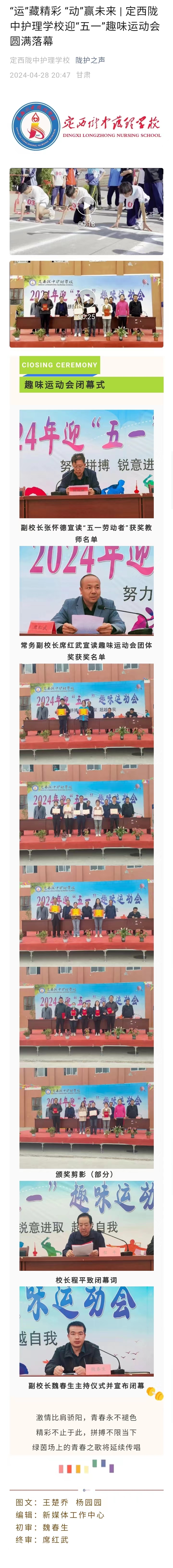 定西陇中护理学校迎“五一”趣味运动会闭幕式
